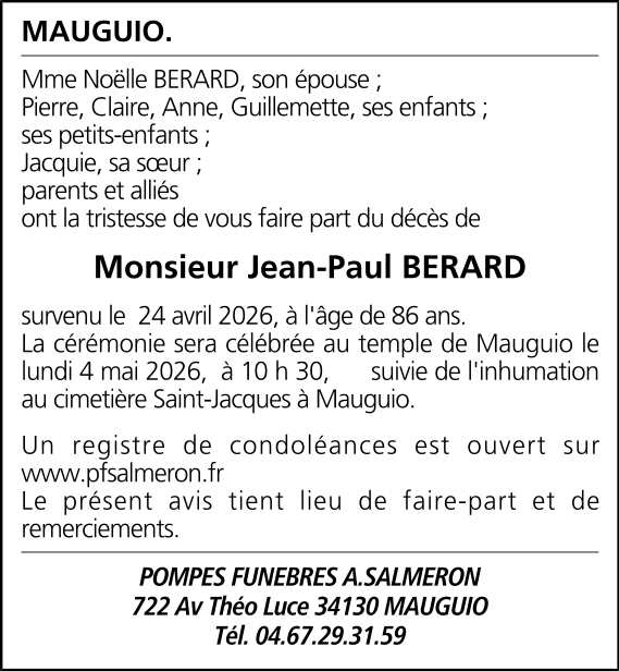cimetière Saint-Jacques à Mauguio le lundi 4 mai à 11 heures 30