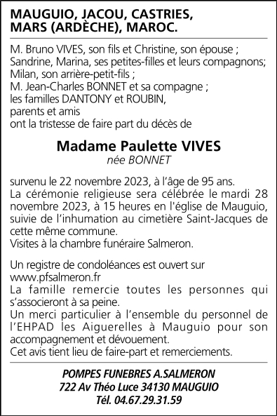 Madame Paulette VIVES née BONNET