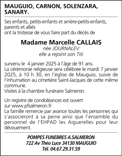 Madame Marcelle CALLAIS née JOURNALEV