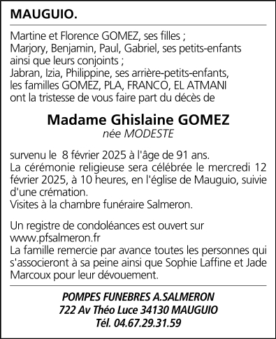 Madame Ghislaine GOMEZ née MODESTE