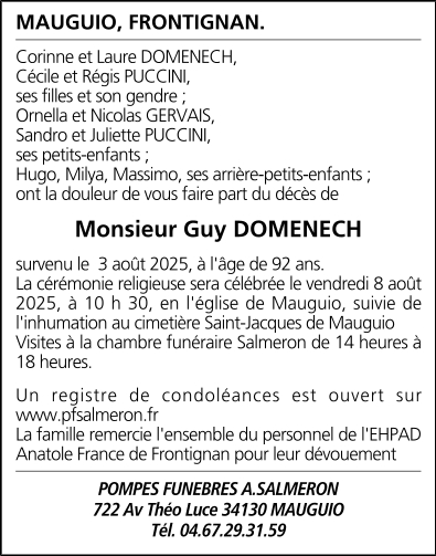 Décédé à Frontignan (34110, France) le dimanche 3 août 2025 à l'âge de 92 ans
