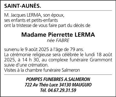 Décédée à Saint-Aunès (34130, France) le samedi 9 août 2025 à l'âge de 79 ans