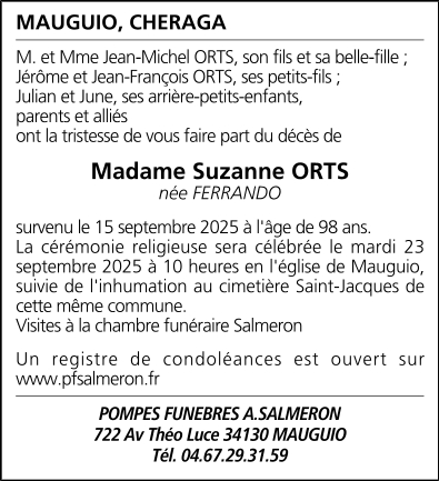 Décédée à Mauguio (34130, France) le lundi 15 septembre 2025 à l'âge de 98 ans