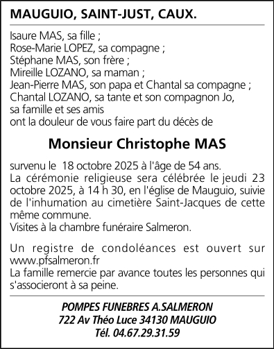 Décédé à Montpellier (34000, France) le samedi 18 octobre 2025 à l'âge de 54 ans
