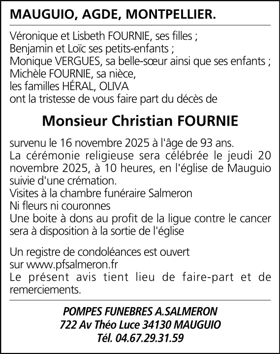 Décédé à Montpellier (34000, France) le dimanche 16 novembre 2025 à l'âge de 93 ans