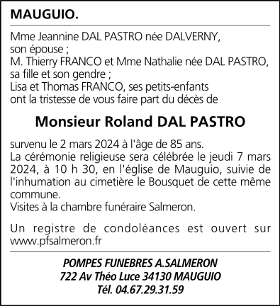 Décédé à Montpellier (34000, France) le samedi 2 mars 2024 à l'âge de 85 ans