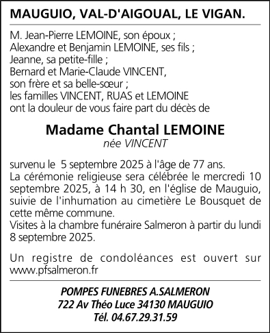 Epouse de Monsieur Jean-Pierre LEMOINE
