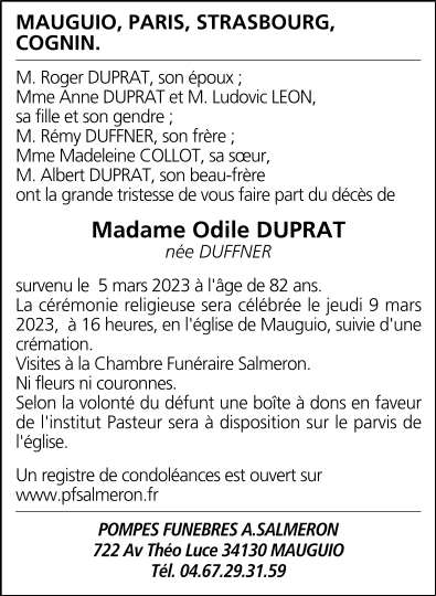 Madame Marie-Odile DUPRAT née DUFFNER