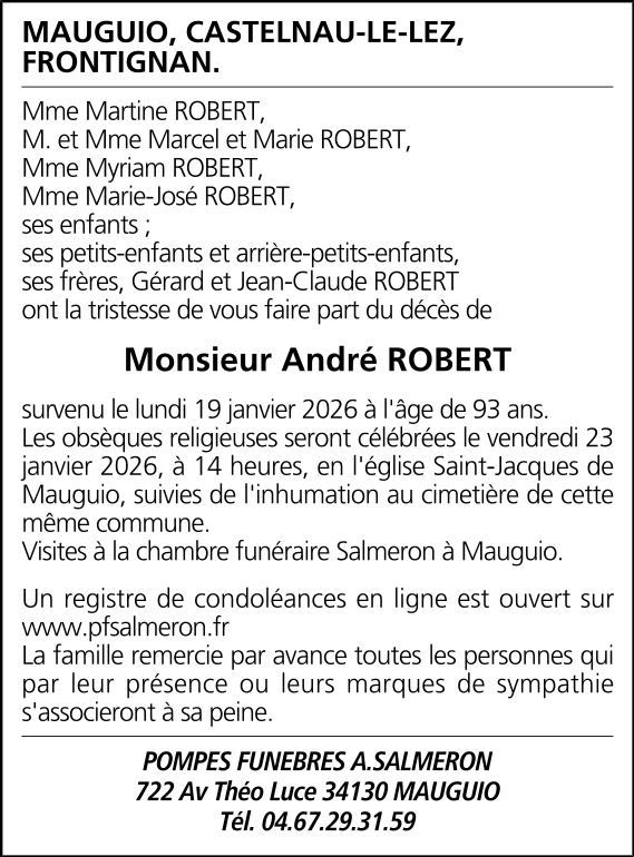 Décédé à Montpellier (34000, France) le lundi 19 janvier 2026 à l'âge de 93 ans