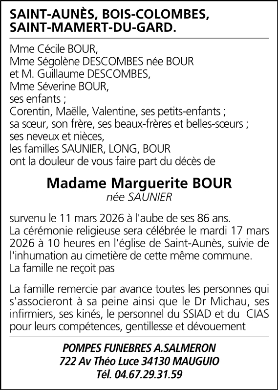 Veuve de Monsieur Olivier BOUR