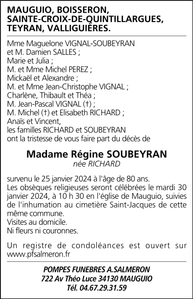 Madame Régine SOUBEYRAN née RICHARD
