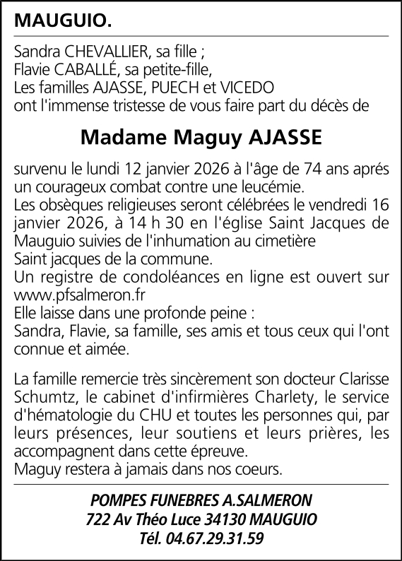 Décédée à Montpellier (34000, France) le lundi 12 janvier 2026 à l'âge de 74 ans