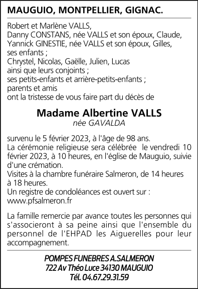 Madame Albertine VALLS née GAVALDA